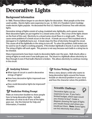 Free Download: Electricity and Magnetism Inquiry Card--Decorative Lights