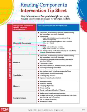 Fill out the form to download the Reading Components Intervention Tipsheet now.